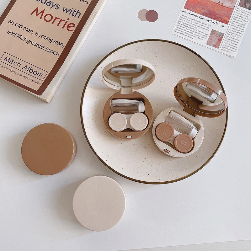 Product information: Material: plastic Uses: contact lenses Color classification: white dark khaki color Packing list Cosmetic contact box*1